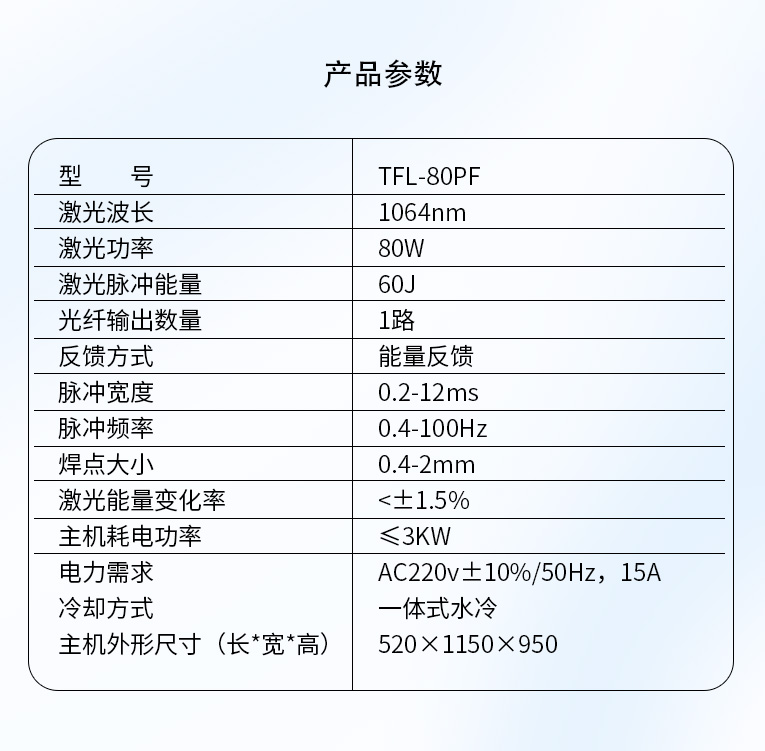 1、該設(shè)備采用升壓電源,不受電網(wǎng)波動(dòng)影響,同時(shí)電源的單點(diǎn)能量輸出能力也更強(qiáng)。